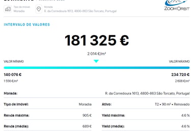 Valores estimados de venda das propriedades após a conclusão das obras de remodelação, servindo como referência para projeções financeiras e análise de rentabilidade.